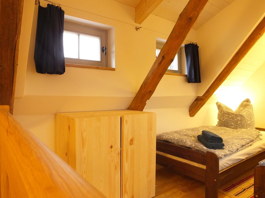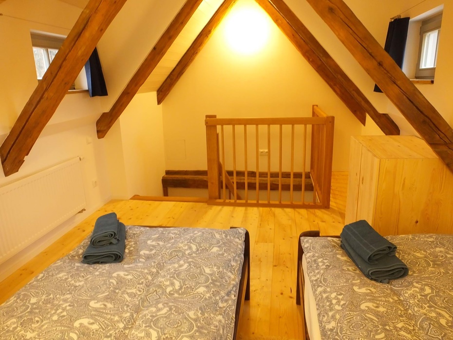 offener Schlafboden mit 2 Einzelbetten